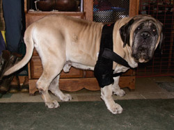 The Standard Adjustable DogLeggs bandaging garment provides the needed coverage, sufficient padding and proper joint movement. The over-the-shoulder design keeps the bandage in place at the elbow without constriction, falling off or irritating the skin. If foam insulation is required, it is possible to cut to form a doughnut pad and to suspend the bandage over the wound and allow for open-air granulation.