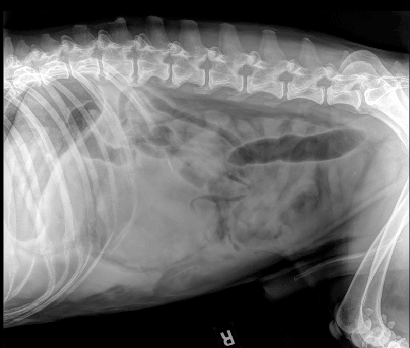 Presentation Photo courtesy Kendra Freeman A 12-year-old male neutered husky presents for decreased appetite. 1) What percent of incidentally, non-ruptured splenic masses are benign? a) 30 percent b) 50 percent c) 70 percent 2) In dogs less than 44 pounds with a hemoabdomen, what organ is most likely to be the source of the bleeding? a) Liver b) Spleen 3) What abnormalities are associated with perioperative mortality with splenic masses? a) Abnormal platelet count b) PVC less than 30 percent c) Ventricular arrhythmia d) All of the above