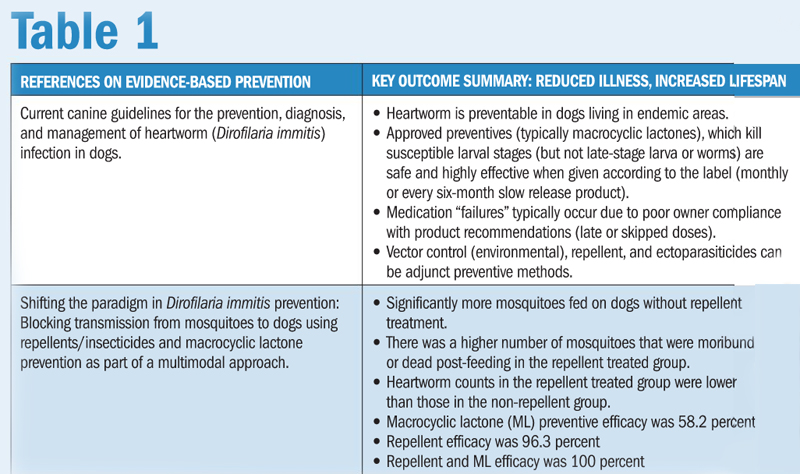 When puppies come in for their first exams, tell clients about different heartworm prevention options. Canine heartworm prevention is a common client conversation topic. In the contiguous U.S., the nematode parasite causing heartworm, Dirofilaria immitis, is endemic, and elsewhere (globally) it is an increasing concern due to climate change, subsequent vector (mosquito) abundance, and range expansion.1,2 Similarly, canine importation can prompt heartworm (HW) disease concern by way of infected dogs imported to non-D. immitis endemic countries. Dogs infected with Dirofilaria immitis, and its common bacterial co-pathogen (Wolbachia spp.), are frequently subclinical on presentation. However, if they do not receive treatment, dogs progress to apparent cardiovascular and respiratory signs, including cough, dyspnea, exercise intolerance, and in severe cases with high worm burdens, right-sided heart failure or caval syndrome.1,2 Despite the dog’s high susceptibility to heartworm, disease is entirely preventable, provided puppies in endemic regions (or at high risk due to travel) are begun on macrocyclic lactones prior to eight weeks old.1,2 Pet owners may challenge the need for preventive care, especially if indicated for lifelong use or in regions not considered heartworm-endemic, for varied reasons. Even without the strain of the continued COVID pandemic, communication in day-to-day practice can be tough. The consideration of individual pet owner needs is evermore essential in the current delivery of veterinary care. Incorporation of spectrum of care, defined as evidence-based veterinary medicine (EBVM) options along the socioeconomic spectrum, within these dialogues can be helpful for clients, patients, and veterinarians alike.3,4 Spectrum of care and EBVM Evidence-based veterinary medicine has been defined as, “the use of the best relevant evidence in conjunction with clinical expertise to make the best possible decision about a veterinary patient.”3,5,6 This, along with spectrum of care, will be used in an all-too-common example of a canine heartworm preventive care conversation. Further information about this process can be found in an earlier “Canine parvovirus care on a budget” article (Veterinary Practice News, November 2021). Dirofilaria discourse for Thornton Let’s meet our patient. Thornton is an adorable eight-week-old, velvet-soft, long-eared, “pandemic pup” with huge chocolate brown eyes. His owners have not had him very long and let you know at the first appointment they are dedicated to his having a natural lifestyle and want to avoid “products” as much as possible. He eats raw and organic food as his main diet, along with natural treats. Thornton is a healthy pup on your exam, and his owners are quick to relay their health care priorities for him, not necessarily in order, as they are both speaking at once and occasionally disagreeing. These are 1) a natural lifestyle and diet; 2) reduced cost of veterinary care; 3) they love their long-eared guy and want to do what they can to keep him around for a very long time; 4) while they are fine with vaccines, as they know they need some of them to travel, they prefer natural (i.e. non-chemical containing) methods of parasite control; and 5) if your recommendation is a preventive “product,” they say, “You better prove to me he really needs it and it is not just propaganda, Doc.” The evidence-based veterinary medicine process Thornton’s care priorities have now been voiced. Let’s implement EBVM and spectrum of care for this little one as well as his besotted people. Step 1 is taking time to develop the clinical question, which is critical for efficient literature searches: In Thornton’s case, the question is around heartworm preventive care (i.e. evidence-based prevention vs. heartworm disease therapy) and his owner’s major outcomes of interest: reduced illness, increased lifespan. Our clinical PICO question,5,6 where P (patient or population), I (intervention), C (control or compare), and O (outcome), might be, “Are dogs living in (or traveling to) heartworm endemic areas (P) who have had prophylactic heartworm medication (I) compared with those without prophylactic heartworm medication (C) at decreased risk for heartworm disease (O) over their lifespan (T).” Step 2 is the scientific evidence: Table 1 details is a summary of a brief (10 to 15 minutes) veterinary literature search (AKA “prove it to me, Doc”) and critical appraisal (e.g. strength of evidence and study limitations) using the PICO question above and a freely available online search engine (such as PubMed.gov). As summarized, the scientific literature1,7 supports appropriate and consistent use of heartworm preventives to reduce illness and increase lifespan as related to preventing heartworm disease. Our level of evidence is categorized as moderate, as it contains one randomized controlled clinical trial and an evidence-based and expert opinion-based consensus guideline.1,7 We can also feel comfortable letting Thornton’s owners know herbal or “natural” prevention therapies have not been shown to be effective based on this literature.1 Additionally, due to reports of resistance to macrocytic lactones, and as a warning that if there are breaks in owner medication application and consistency, it may be indicated to add ectoparasiticide-mosquito repellent to conventional preventives for Dirofilaria. These products may lower infection risk further and “ramp up” coverage to assist if (or when) a dose of medication is missed.1,2 Environmental control of mosquitoes as part of multi-modal prevention is not being discussed in this article and the reader is referred to the American Heartworm guidelines for review, along with information pertaining to disease diagnosis, travel- and import-related exposure, and therapy.1 Thornton’s spectrum of care cost options Listed below are examples of spectrum of care cost ranges (<$100, $100