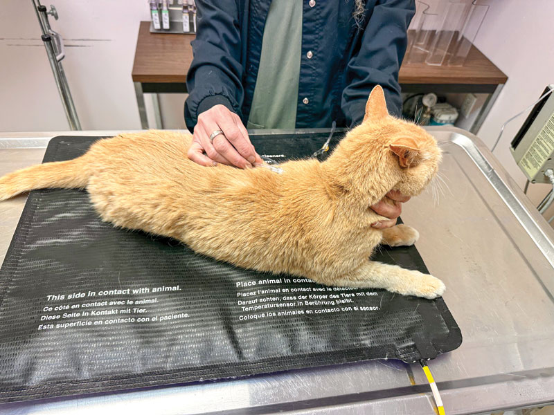 Geriatric animals have less capability to keep warm. Use warming mats during procedures and when caged to help keep them warm. Warming the fluids prior to administration can also help maintain body temperature. Photo courtesy Dr. Michael C. Petty In general terms, geriatric patients are defined as those that have completed 75-80 percent of their anticipated life span.1 In humans, geriatric comorbidities are the main cause of mortality during anesthesia.2 There is no reason to think it is any different in our dogs and cats. The second largest reason is that in most geriatric patients, there is a decline in the normal “reserve capacity” which can impede their response to situations of stress, such as hospitalization and surgery.3 Not all dogs and cats have issues with major organ systems, but those of high consideration are the cardiovascular system, major organs, such as the liver and kidneys, and the respiratory system. Additionally, for unknown reasons, older patients require less injectable and inhalant anesthetic drugs to produce general anesthesia.4 The following is a list of common considerations when dealing with apparently healthy geriatric patients. It is not intended to serve as a guide for geriatric patients with significant or profound comorbidities. Additionally, this writing concentrates on pain management, which also overlaps with anesthetic protocols. It is not meant to be a guide for induction or maintenance of anesthesia. Pharmaceutical considerations: Acute pain Opioids Opioids are amazing pain drugs when used in acute pain settings, such as pre- and post-surgery, and in the case of trauma. Opioids are generally the safest and most effective agents available for the treatment of acute pain. Although many of us were taught to fear the serious side effects of opioids, these concerns were inappropriately extrapolated from experiences in human medicine.5 Opioids work on several levels, including the inhibition of pain at peripheral nociceptors, modulation of the pain signal in the spinal pathway, and reduced perception of pain in the brain. Modification of opioid doses for geriatric animals is not needed. Opioids can be classified into three types: Full agonists. These opioids produce dose-dependent analgesia—that is, the more administered (within safety limits), the greater the effect. They bind and fully activate opioid receptors, particularly the μ receptor. Clinical application: Used for procedures that have the potential for causing severe pain, including perioperative and trauma pain. Partial agonists. Partial agonists bind to opioid receptors with high affinity but produce a submaximal effect, even at higher doses. This ceiling effect limits both their analgesic potential and their potential side effects. Clinical application: Appropriate for mild to moderate pain. Agonist-antagonists. These drugs act as agonists at some opioid receptors (typically κ) and antagonists at others (typically μ). This class of opioids rarely causes dysphoria. They may displace full agonists from the μ receptor, potentially reversing their effects. Clinical application: Used for mild to moderate pain. They are useful for opioid reversal when dysphoria occurs with full agonists but still allow partial maintenance of analgesia. Refer to Table 1 for a detailed breakdown of commonly used opioids by classification, route of administration, and clinical indications. Table 1: Commonly used opioids and their classification, indication, and administration Drug Efficacy Dosage for dogs Duration Morphine Excellent 0.1-0.2 mg/kg IM Up to 4 hours Hydromorphone Excellent 0.05-0.2 mg/kg IM Up to 6 hours Fentanyl Excellent 2-10 mg/kg IV Up to 1 hour Methadone Excellent 0.2-0.5 mg/kg IV, IM, SQ Up to 4 hours Buprenorphine Moderate to good 10-20 mg/kg IM Up to 6 hours Butorphanol Poor 0.2-0.4 mg/kg IM Up to 1.5 hours Drug Efficacy Dosage for cats Duration Morphine Excellent 0.1-0.2 mg/kg IM Up to 4 hours Hydromorphone Excellent 0.05-0.1 mg/kg IM Up to 6 hours Methadone Excellent 0.2-0.5 mg/kg IV, IM, SQ Up to 4 hours Buprenorphine Moderate to good 0.01-0.02 mg/kg IM** Up to 6 hours Butorphanol Poor 0.1-0.4 mg/kg IM Up to 45 minutes *Always use a dosing regimen and opioid that you feel comfortable with. **The author recommends the use of Simbadol, a concentrated buprenorphine product that is given subcutaneously. Morphine Morphine is the prototypical opioid against which other opioids are measured. It is extremely safe, with minimal cardiovascular and respiratory effects. As a full agonist, it is reversible. Morphine can cause a decrease in GI motility, which should not be of clinical importance when used short-term, such as for surgery. It also causes vomiting, especially in those patients that receive it prior to surgery. Morphine can be given subcutaneously, intramuscularly, or very slowly intravenously to avoid histamine release. It has a rapid onset of action, occurring within three to five minutes, and provides analgesia for two to four hours. Note: Morphine is potentially less effective in cats than it is in dogs, as cats only benefit from the parent drug but cannot make the intermediate metabolite. Hydromorphone It is very similar to morphine in terms of onset and duration. All opioids can cause hyperthermia; however, it has been implicated, maybe wrongly, to be more severe in cats. One study showed all opioids tested caused a mild increase in body temperature.6 This is usually a self-limiting issue and may also be more closely associated with post-emergent dysphoria following sedation or general anesthesia. Methadone Very similar to morphine but also has some N-methyl-D-aspartate (NMDA) antagonist activity. Methadone causes little nausea and is less likely to cause dysphoria compared to other full agonists. Fentanyl A very potent opioid given intravenously as either a constant rate infusion or as a bolus. It has a rapid onset of action, typically occurring within two to five minutes. It is
