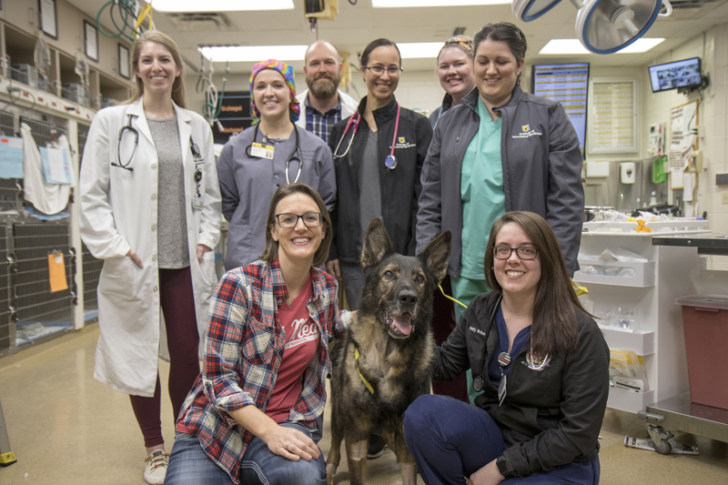 Canine Lor and his handler, retired Deputy Sheriff James Craigmyle of the Greene County Sheriff’s Office. Fans of Live PD breathed a sigh of relief last week after a beloved canine officer underwent successful emergency surgery at the University of Missouri’s (MU’s) College of Veterinary Medicine Veterinary Health Center. Throughout his storied career with the Greene County Sheriff’s Office in Missouri, Lor, a German shepherd originally from the Czech Republic, worked alongside his handler, Deputy Sheriff James Craigmyle. The duo achieved a loyal fan base through years of appearances on Live PD, a reality television show offering viewers a behind-the-scenes look at 911 calls across the U.S. “Lor was a fantastic police dog due to his courage, heart, and relentless drive,” Craigmyle says. “Whether it was sniffing out illegal narcotics or apprehending suspects who had fled from the police, he was a phenomenal asset to our team.” The pair retired from the force in November 2019, with Lor living with his handler as a pet rather than a partner. Last month, Craigmyle rushed Lor to the veterinarian after noticing he was panting heavily and had a fever of 104 F. He was told the dog may have had a tumor rupture in his small intestine, and was referred to MU’s College of Veterinary Medicine Veterinary Health Center for treatment. The veterinary team there recommended surgery on the dog’s small intestine, but warned Craigmyle that Lor was not in the clear. Lor and his veterinary team from the University of Missouri’s (MU’s) College of Veterinary Medicine Veterinary Health Center. “When I took him to the emergency veterinary hospital [at MU], there was a 50-50 chance in terms of whether or not he would make it,” he says. However, after a lengthy surgery and a regime of antibiotics, Lor’s condition began to improve. “All the doctors and technicians at MU that helped him recover were incredible.” Fortunately, the dog’s medical costs are being covered by Project K9 Hero, an organization that helps with veterinary bills of retired military and working dogs. “I have been receiving messages of support from people in Japan, Germany, South Africa—you name it,” Craigmyle says. “Lor helped bridge the gap between law enforcement and the community. He is nothing short of a hero.” With files from Mizzou News: University of Missouri