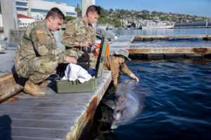 Program administrators are quick to assure the animals are never placed in jeopardy as a result of their work. For example, dolphins are trained to place a location marker near a mine, never on it. To ensure the highest standards, the program is accredited by the Association for Assessment and Accreditation of Laboratory Animal Care International (AAALAC), a nonprofit, nonregulatory organization that promotes high standards for animal care and use.