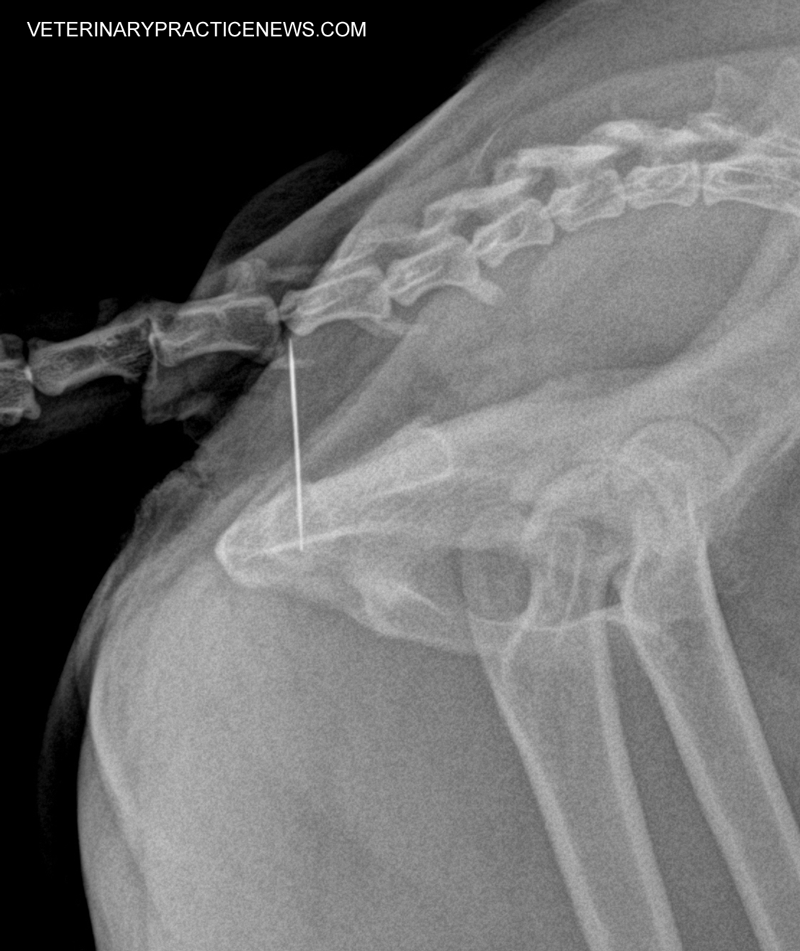 For the past 11 years, Veterinary Practice News has hosted the annual “They Ate What?!” radiograph contest, where veterinarians send in the craziest and strangest radiographs they’ve encountered in their practices. This year's winner was Patricia Clark, DVM, of German Flatts Veterinary Clinic in Ilion, N.Y. Her patient, a 5-month-old pit bull named Jasper, managed to swallow an 8-inch section of a dog toy handle while shielding the toy from a competitive mate. In the process, Jasper and his unusual radiograph made the New York veterinary clinic the winner of the 11th annual "They Ate What?" radiograph contest. This year’s contest was sponsored by IDEXX Laboratories Inc. Dr. Clark received $500 and a year’s subscription to Web PACS, a Picture Archiving Communications System valued at $2,400. Clark gave the $500 prize to the owners to help pay off the cost of surgery, a total of $1,400. This year, the Veterinary Practice News editorial team and a select number of veterinarians judged the entries. The judges included: Dr. Evan Antin, Thousand Oaks, Calif., veterinarian and People magazine’s “Sexiest Beast Charmer;" Dr. Marty Becker, Sandpoint, Idaho, veterinarian and “In the Middle” columnist; Dr. Patty Khuly, Miami veterinarian and “Off Leash” columnist; Dr. Mary Beth Leininger, assistant vice president of veterinary relations at The Hartville Pet Insurance Group and former president of American Veterinary Medical Association; Dr. Dennis M. McCurnin, Louisiana State University professor of surgery emeritus and LSU hospital director emeritus; Dr. Narda Robinson, president and CEO of CureCora and “Evidence-based Medicine” columnist; Dr. Alice Villalobos, director of Pawspice and Animal Oncology Consultation Service and occasional Veterinary Practice News columnist; Dr. Phil Zeltzman, Pennsylvania veterinary surgeon and “Surgical Insights” columnist; Ken Niedziela, Veterinary Practice News editor. Check out the winning photo from Dr. Clark, as well as all of our honorable mentions below. And when you're finished, vote for your favorite X-ray in our Peoples' Choice contest for a chance to win $500! Tell us your favorite X-ray with the hashtag #TheyAteWhat. Winner: The 8-inch Dog Toy Handle in a Pit Bull's Tummy Patricia K. Clark, DVM German Flatts Veterinary Clinic, Ilion, N.Y. The 8-inch dog toy handle, post-op. Photo courtesy German flatts veterinary clinic/veterinary practice news Jasper, a 5-month-old, 40-pound pit bull, was one of those short, thick, adorable pit pups wider than they are tall. He was brought to the clinic after vomiting for two days. Dr. Heather Sautter took radiographs and commented, “It can’t be possible to swallow an entire corncob, can it?” The owner, upon seeing the radiographs, identified the object as a dog toy handle. Apparently, two days prior, Jasper and another dog were sharing the couch when a scuffle occurred. Unbeknownst to the owner, Jasper had been chewing on the 2½-foot-long toy and, feeling threatened, gobbled an 8-inch portion of the handle so the other dog wouldn’t get it. Upon opening the dog, Dr. Patricia Clark found the butt end of the handle in the pylorus and the chewed midsection close to rubbing through the fundus. Mind you, this dog was only 40 pounds and only 6 inches deep in that area of the stomach. The recovery was uneventful. Judge’s comment: “This submission blew me away. How in the world could a pup of this size get that thing swallowed? Fortunate that surgery was early enough to prevent gastric perforation.” (Dr. Mary Beth Leininger) Judge’s comment: “I like this case not only because I would have assumed an 8-inch plastic object impossible for a 40-pound dog to swallow, but also because it perfectly illustrates that competition doesn’t always bring out the best in us.” (Dr. Patty Khuly) Judge’s comment: “It is amazing that Jasper chewed off the handle and that the rough edges were just about to perforate his fundus. The timely surgery saved Jasper from a nasty peritonitis” (Dr. Alice Villalobos) See the X-ray below: Find out more about Dr. Clark and Jasper's winning X-ray here. Honorable Mentions The Case of the Missing Paracord Photo courtesy Eric P. Steinlage, DVM/All Dogs Clinic, Rogers, Ark. Our patient obviously had been ill quite longer than the client indicated. At first glance she appeared to be a textbook case of Cushing’s disease — her ribs were showing, her skin was thin and her abdomen was severely distended. Radiographs were taken and the dog was taken to surgery, where a large amount of paracord was removed. Paracord is a lightweight nylon cord used in parachutes, ropes and bracelets. When the owner was told about the paracord, he said, “I have been missing that for about a year.” The dog was back to normal in a matter of days. Recovery was uneventful. Not for Consumption Photos courtesy BluePearl Veterinary Partners, Renton, Wash. A 9-month-old Yorkshire terrier presented after a carabiner used to keep his crate closed became impaled in his oral cavity. Upon presentation, the puppy was alert and his vital signs were stable. One end of the carabiner appeared to be embedded in the soft tissue caudal to the upper left dental arcade. Significant swelling was noted in the left periorbital region, and the globe would move when the carabiner was manipulated. The puppy was anesthetized to allow for a more thorough physical examination. Due to concern about penetration of the object into the retrobulbar space and trauma to associated vessels and nerves, a surgeon was called in. The surgeon used gentle manipulation to remove the carabiner within 10 minutes. The retrobulbar area did not appear affected, hemorrhage was minimal, and the cavity was lavaged and closed. The left sub- lingual area had a laceration that was addressed. A complete ophthalmic exam did not reveal any trauma to the globe itself. The patient was discharged with antibiotics and NSAIDs, and he mad