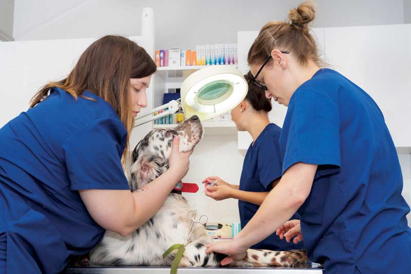 Documentation and monitoring vitals is crucial in caring for a critical patient. Technicians will be asked at some point in their career to monitor critical patients, where a high level of care, concentration, and critical thinking skills are required. Technicians must be comfortable with monitoring these patients and alerting the clinician when patient parameters change. An example is a patient on the critical care ventilator. Most general practices and some specialty facilities do not have such equipment, but the process of caring for a ventilator patient can be translated to any critical patient. Everything a technician has learned in school is applied. Multiple monitoring devices should be used to keep an eye on the patient’s vitals, hydration and ventilation status, and organ function. Documentation is very critical. Every change in a patient’s condition should be documented, and vitals should be taken on the patient frequently. Accessing airway Many technicians ask, “What do we need to do first?” The answer is to assess the patient’s airway. Ventilator patients should be intubated for as long as possible. Since they are sedated, they are on multiple medications to help decrease their respiratory drive and allow the machine to breathe for them, making them at risk for regurgitation and aspiration. One of the major complications of a mechanically ventilated patient is hospital-acquired pneumonia due to bacteria being introduced by the endotracheal tube. A sterile or aseptic technique should be used to place the endotracheal tube to ensure there are minimal bacteria entering the airway. A pulse oximeter should be placed on the patient to make sure they are appropriately perfusing their organs. Capnography should also be used to make sure the patient is ventilating appropriately and getting a normal end-tidal carbon dioxide (ETCO2) reading of 35-45 mmHg. Suctioning and humidifying of the endotracheal tube should be performed every four hours, or as needed, to prevent mucous secretions from clogging the endotracheal tube. Placing venous access Hopefully, the patient already had venous access. If not, a peripheral catheter most likely will not be enough. Triple or quadruple lumen central lines should be placed, which will help with the multiple medications these patients are on, as well as possibly be used for intravenous nutrition and blood sampling. These can be placed in the jugular veins, saphenous veins, medial veins, or ombobracheal veins. Ombobracheal veins are very hard to see, so I would suggest going for the other veins first. If placing a central line in a jugular vein, a radiograph must be performed to make sure the catheter is placed in the cranial vena cava right above the right atrium. Monitoring blood pressure Blood pressure on critical patients is a very important diagnostic tool to let a veterinary team know how the patient’s perfusion is doing. An invasive blood pressure monitoring is going to be the most acuate way to measure blood pressure. Attempting an arterial catheter on a patient that has a blood pressure lower than 60 mm/Hg can be very difficult, so the next best way to do so is with a doppler. Doppler blood pressure measures systolic blood pressure. Normal systolic blood pressure in veterinary patients should be around 90-120 mm/Hg. Oscillometric blood pressure can be used, but it should be taken into consideration it may not be as accurate in small or awake animals. A multiparameter unit should be placed on the patient to assess heart rhythm, ETCO2,blood pressure, oxygenation, and temperature. The electrocardiogram clips should be placed on “sticky” pads to ensure the metal clips do not cause skin damage. Extending care The patient should also be placed on a properly cushioned area. When it comes to critical patients, it is easier on everyone if the patient is placed on an elevated table. This way, you can get around the patient on all four sides. These patients are prone to pressure sores, especially when they start losing muscle mass due to inactivity. Once the patient is hooked up to all monitoring devices, there are multiple areas to consider. The patient’s airway, mouth, eyes, ears, and urinary and gastrointestinal systems must be cared for. The technician must also preform physical therapy. 1) Airway. If the patient has an endotracheal tube, it must be properly cared for to make sure the patient does not contract hospital-acquired pneumonia. The endotracheal tube must be replaced every 24 hours with a sterile technique. In a recumbent patient, you must inflate the cuff to ensure the lungs inflate appropriately. One complication of the cuff being inflated, or overinflated, could cause tissue necrosis of the trachea. It is suggested to deflate the cuff and reposition the endotracheal tube every four hours to prevent tissue necrosis. These patients also need humidification of their airway. This can decrease mucous viscosity and decrease tracheal inflammation. To do this, technicians can instill a small amount of sterile water into the endotracheal tube and then suction the endotracheal tube after. Suctioning of endotracheal tube is necessary to prevent mucous buildup and occlusion of the airway. This should be performed every four hours or on an as-needed basis. Patients that are recumbent and have endotracheal tubes or tracheal tubes in are at an increased risk of ulcers in their oral cavity. To prevent this, the whole mouth must be kept moist. The technician must suction out all mucous and debris. Use a different suction catheter than the one used for the tracheal tube. This will prevent bacteria from being introduced into the lungs. A glycerin solution can then be used to prevent drying out the tongue. The tongue can also be covered with a glycerin-soaked gauze. Do not wrap the tongue as this can cause ranulas to form. The pulse oximeter probe should also be taken off the tongue and moved to a different area to prevent necrosis. This p