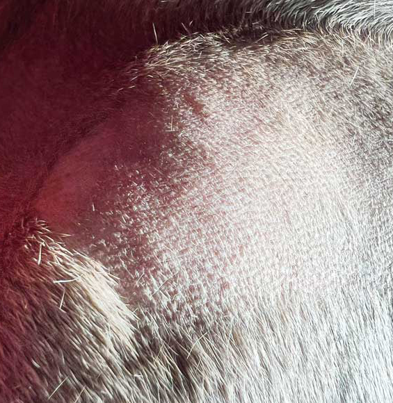 Figure 1 (left): Harley's tumor is subtle and could have easily been written off as a lipoma. Figure 2 (right): The HT Vista in action, heating the tissue a few degrees prior to scanning. Photo courtesy Mike Petty I can’t speak for other surgeons, but I suspect we all have a similar dilemma when we look at an unknown lump for surgical removal. Should it be removed with wide and deep margins in case it is malignant? What if it is in an area such as the leg, where a larger incision might mean an incomplete closure without performing a tissue-releasing incision like a Z-plasty? What if it is on the head, where a wide incision might risk injury to a cranial nerve or cause distortion of the animal’s features? Should a punch biopsy be done ahead of time prior to removing it? Maybe a cytology, only to get back ambiguous results because we are only taking a millimeter-wide section for the pathologist to look at? All these choices have consequences for both the patient and owner. For the patient, an incision with unnecessarily wide margins means more pain on recovery, a potential injury to surrounding tissue and nerves, and even delayed healing time. It means additional anesthesia risk if it is done in stages. It means additional fear, anxiety and stress for the additional visits and procedures. For the owner, it also means additional money for a more extensive or additional procedures, as well as the emotional component of having to leave their pets twice for two different procedures. A more accurate approach Figure 3: Harley received a score of 3, giving a good probability of this being a malignancy. At last, there is a tool that we can use to help us make a more informed decision, and it is fast and easy, giving us an answer within minutes. A device called HT Vista uses heat diffusion that recognizes cancerous cells by their unique dynamic heat flow properties. This device screens suspicious lumps and bumps and has a negative predictive value of over 98 percent. The system is designed to err on the side of calling a lump malignant (or “requires further investigation”) so as to not call something that appears marginally malignant, benign. In other words, the system divides the likelihood of a lump, along a scale of one to 10, into either the “requires further investigation” (possibly malignant) or benign category. On the other hand, it is important to note what the HT Vista is limited to: It only looks at cutaneous and subcutaneous lumps. It cannot be used on lymph nodes or internal organs. It cannot accurately predict malignancy in a cutaneous lump that has a raw or bleeding surface. If there is a negative result, there is a 98 percent likelihood the scanned mass is not malignant. Questionable results will always put the score on the malignant or “suspicious” side, so that a potential malignancy is not ignored. How it works Figure 4: Fluff’s growth prior to scanning and removal. The machine must be turned on with an internet connection. An area on the patient is clipped close with a number 40 blade, including some adjacent “normal” tissue. The device is then placed over the lump and some of the normal tissue next to it, and then the tissue is mildly heated for a few seconds. It then scans the tissue to see how it reacts—malignant tissue reacts differently to thermal stimulation than normal tissue does, and the device AI algorithm interprets the heat diffusivity of selected adjacent areas. The whole process takes one minute, with results returned within minutes. A decision can then be made—removal with wide margins, narrow margins, no removal at all, or further follow up needed. Cases in point Figure 5: One week post-surgery prior to suture removal. The following are three cases that I saw in my clinic, along with scores and histopathology/cytology outcomes. Case 1: Harley, an eight-year-old neutered male American pit bull, was presented with a rapidly growing subcutaneous lump on his lateral thigh. Upon presentation it seemed fairly innocuous. However, it was large enough there was a concern for complete closure should we have to do wide margins (Figure 1). Next, we scanned the growth (Figure 2). A few minutes later, we got back the report (Figure 3). Due to a score of 3, I removed the growth with 4-cm wide margins and as deep as I could down to the muscle layer. Thanks to this information, the report came back as a soft tissue sarcoma, grade 2, with clean margins. Case 2: Fluff is a 13-year-old neutered male Canaan dog that was presented with a lump on his thorax that had been the same size for many months but was suddenly growing (Figure 4). The owner was reluctant to have it removed because several years previously, we had removed a lump from Fluff that was then diagnosed as a mast cell tumor with inadequate surgical margins. At the time of the surgery, it appeared to be a lipoma upon removal, and narrow surgical margins were made. The surgery site subsequently dehisced, and it required multiple surgeries before it was healed. Figure 6: The owner was very concerned this might be a tumor. I was concerned about the location on the shoulder and post-surgical complications. Understandably, the owner did not want to put his now aged dog through that scenario again. Fortunately, we now had the HT Vista and were able to determine it was a malignant growth, so it was removed with wide and deep margins (Figure 5). Once again, we got back a histopathology report of soft tissue sarcoma grade 1, clean margins. Case 3: Remington is a six-year-old neutered male Weimaraner that was presented with a lump just cranial to his scapulohumeral joint, which had recently changed in character from soft and fluctuant to firm (Figure 6). The owner was interested in having it removed, but I explained there would be a healing issue because of its proximity to the shoulder joint and the fact Remington was a very athletic and active dog. She agreed to have it scanned with the HT Vista, and it c