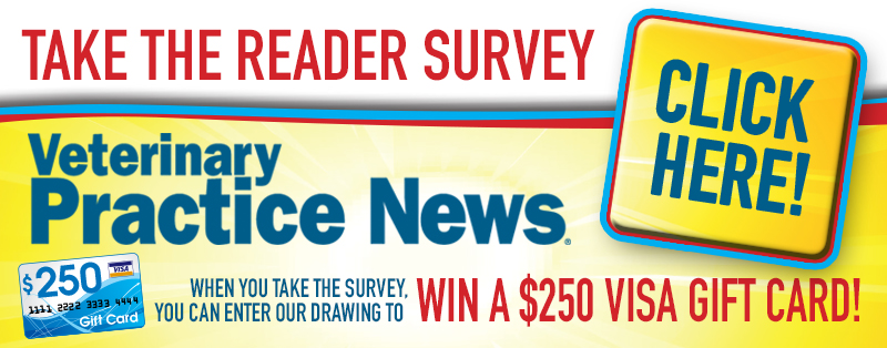 Take the Veterinary Practice News reader survey for a chance to win a $250 Visa gift card! Click here to take the survey.