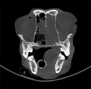 Cone-beam CT scan shows a predominantly left-sided nasal tumor that extends into the olfactory lobe of the patient’s brain. We had a tough day at the clinic recently. Working in the specialty of dentistry and oral surgery, it’s rare we need to broach the topic of euthanasia. And if we do, it’s usually in regard to a patient whose quality of life is diminishing because it has a form of cancer we are unable to fix with surgery. Dante, a 13-year-old neutered male schnauzer/poodle mix, was presented to us for assessment of his dental problems. The first sign noted was when Dante’s mom saw swellings in the neck region that were assessed by his primary care veterinarian to be enlarged mandibular lymph nodes. Historically, Dante was doing well at home, with the only recent change being an increased frequency of reverse sneezing. Anesthesia, dental cleaning, and aspiration of the mandibular lymph nodes were done at Dante’s primary care facility. At the time of the cleaning, Dante was noted to have periodontal disease and tooth resorption, and was therefore referred to me to see if extraction of the diseased teeth might resolve the issue with the enlarged nodes. The nodes were reported to decrease in size after his prior cleaning, but they were still markedly enlarged when Dante visited me for a consultation approximately one month after the initial procedure. Reviewing the prior aspirate results, I saw the predominant finding was reactive lymphoid hyperplasia; however, the cytologist reported there were clusters of cells that were concerning for possible metastatic carcinoma. An episode of epistaxis Once I saw this information, I suspected the clinical signs may not be resolved by extraction of diseased teeth. I recommended an anesthetized exam to take a closer look for a possible primary site of a carcinoma. After his initial conscious examination, Dante waited patiently on his mom’s lap for his anesthetic procedure, which was slated to occur after another patient received a root canal treatment. As he sat in the waiting room, Dante showed a new clinical sign of a trickle of blood from his left nostril. This was his first episode of epistaxis. Perhaps the mere stress of being in a veterinary facility caused an increase in blood pressure, which spurred on the epistaxis. My first comment on hearing about the nosebleed was, “We may have found our primary site of carcinoma.” Around the same time as the onset of epistaxis, Dante’s mentation quickly progressed to a much more dull state when compared to a relatively normal level of lucidity when he arrived at our hospital. We discussed our concerns with Dante’s mom, and she agreed diagnostics were warranted to assess the nose for possible primary nasal carcinoma. We placed Dante under anesthesia and performed a cone-beam computed tomography (CBCT) scan that revealed an aggressive nasal tumor filling the entire left nasal passage and causing lysis of the cribriform plate, extending into the olfactory lobe of the brain. After showing Dante’s mom the CBCT and discussing the options, she decided to not pursue radiation/chemotherapy. Her primary concern was preventing Dante from suffering further, and she requested we euthanize him while he was still under anesthesia. Life can turn on a dime Dante’s mom and grandmother were right by his side when I injected the euthanasia solution into his IV catheter. After finishing the injection, I reached for the stethoscope draped over my shoulders, and I took a listen to Dante’s heart. The heart was no longer beating. “He’s gone,” I said to his owner. Much crying and hugging ensued. Details of owner’s wishes for cremation were confirmed, and before long, Dante’s mom and grandmother were on their way home. As they left the hospital, I couldn’t help but think of how life can turn on a dime. One moment you are bringing in your beloved pet for oral surgery, and a couple of hours later, he or she is no longer part of this world. Our staff took it pretty hard. Decades ago, when I was in general practice, it was not uncommon to perform multiple euthanasias in a single day, and it could really take a toll. However, as a specialist in dentistry and oral surgery, I probably perform less than five euthanasias a year, and this was the first one we had performed in our new practice, which opened in March. I think every employee shed multiple tears for Dante that day, but we all knew in our hearts it was the right decision. In a way, it was good Dante was in a medical facility when his disease process started to progress, so that he and his mom were able to avoid a potentially worse situation at home. Our staff’s genuine concern for Dante was obvious to his mom and grandmother. The next day, Dante’s mom wrote via email to our practice manager: “We are a mess and I keep crying and crying. I can’t believe Dante is gone. He was awesome in every way... Your hugs and personal touch were extra special, and even though I don’t think we were able to let you know enough yesterday, thank you for helping us through one of the darkest days of our lives. Your hugs were real and genuine, and know we felt sincerity from you.” Though such moments can be emotionally draining, when they do arise, we in the veterinary profession have an opportunity to positively impact our fellow humans’ lives in a lasting way, turning a dark moment into a chance to show we care. It’s not just about the animal at the end of the leash: it’s about the animal at each end of the leash. John Lewis, VMD, FAVD, DAVDC, practices dentistry and oral surgery at Veterinary Dentistry Specialists and is the founder of Silo Academy Education Center, both located in Chadds Ford, Pa.